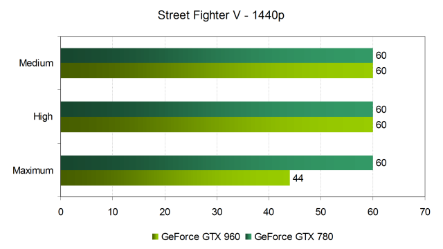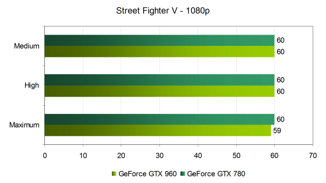 Да и при максимальных настройках минимальная частота кадров в 60 FPS обеспечивается GeForce GTX 780, а вот среднеценовая GeForce GTX 960 из современной линейки может в редчайших случаях большой нагрузки на GPU потерять один-два кадра в секунду, что конкретно в случае Street Fighter V приводит к не самым приятным последствиям, так как в файтинге с привязкой таймингов к FPS, меньшая скорость смены кадров вызовет или серьезное замедление или неприятную просадку в производительности, в зависимости от того, локальная это драка или сражение в онлайне.