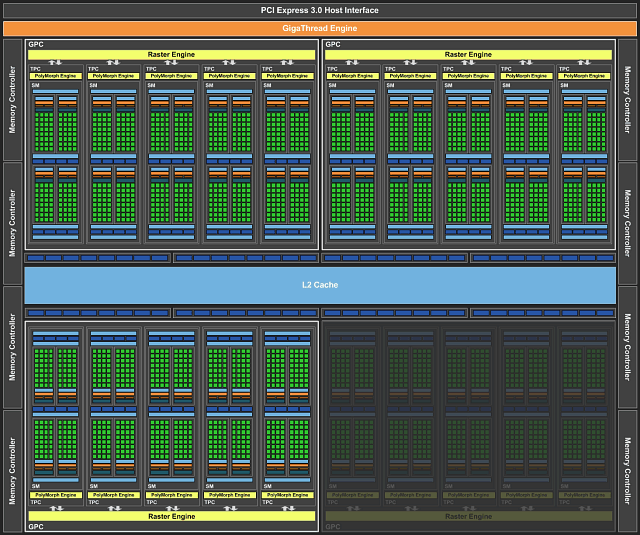 | Вычислительные блоки | 15 активных (из 20 в чипе) потоковых мультипроцессоров, включающих 1920 (из 2560) скалярных ALU для расчетов с плавающей запятой в рамках стандарта IEEE 754-2008; |