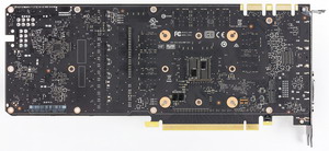 Как в свое время GTX 970 получился из GTX 980, внешне по сути ничем не отличаясь (кроме урезанного по частотам и блокам ядра, плюс небольшое упрощение системы питания), точно также GTX 1070 получился из GTX 1080, о котором мы уже писали ранее. Еще раз отметим, что PCB видеокарт GTX 970/980/1070/1080 очень похожи. Вероятно они даже выпускаются на одном заводе. Расположение микросхем памяти идентичное. Схема питания получила 4+1 фаз, управляется цифровым контроллером NCP81022 производства On Semiconductor. На момент написания материала разгон ускорителя был невозможен (имеющиеся в открытом доступе утилиты не могли регулировать частоты).