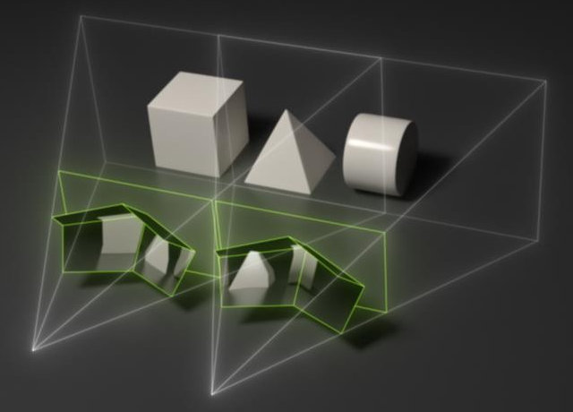 Нельзя не выделить технологию мультипроецирования Simultaneous Multi-Projection, которая помогает повысить производительность в системах виртуальной реальности, получить более корректное отображение сцен на многомониторных системах, и внедрить новые техники оптимизации производительности. Но наибольший прирост в скорости получат VR-приложения, когда ими будет поддерживаться технология мультипроецирования, помогающая вдвое сэкономить ресурсы GPU при обработке геометрических данных и в полтора раза — при попиксельных вычислениях.