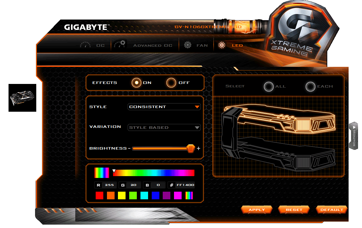 Объект исследования: Серийно выпускаемый ускоритель трехмерной графики (видеокарта) Gigabyte GeForce GTX 1060 Xtreme Gaming 6 ГБ 192-битной GDDR5