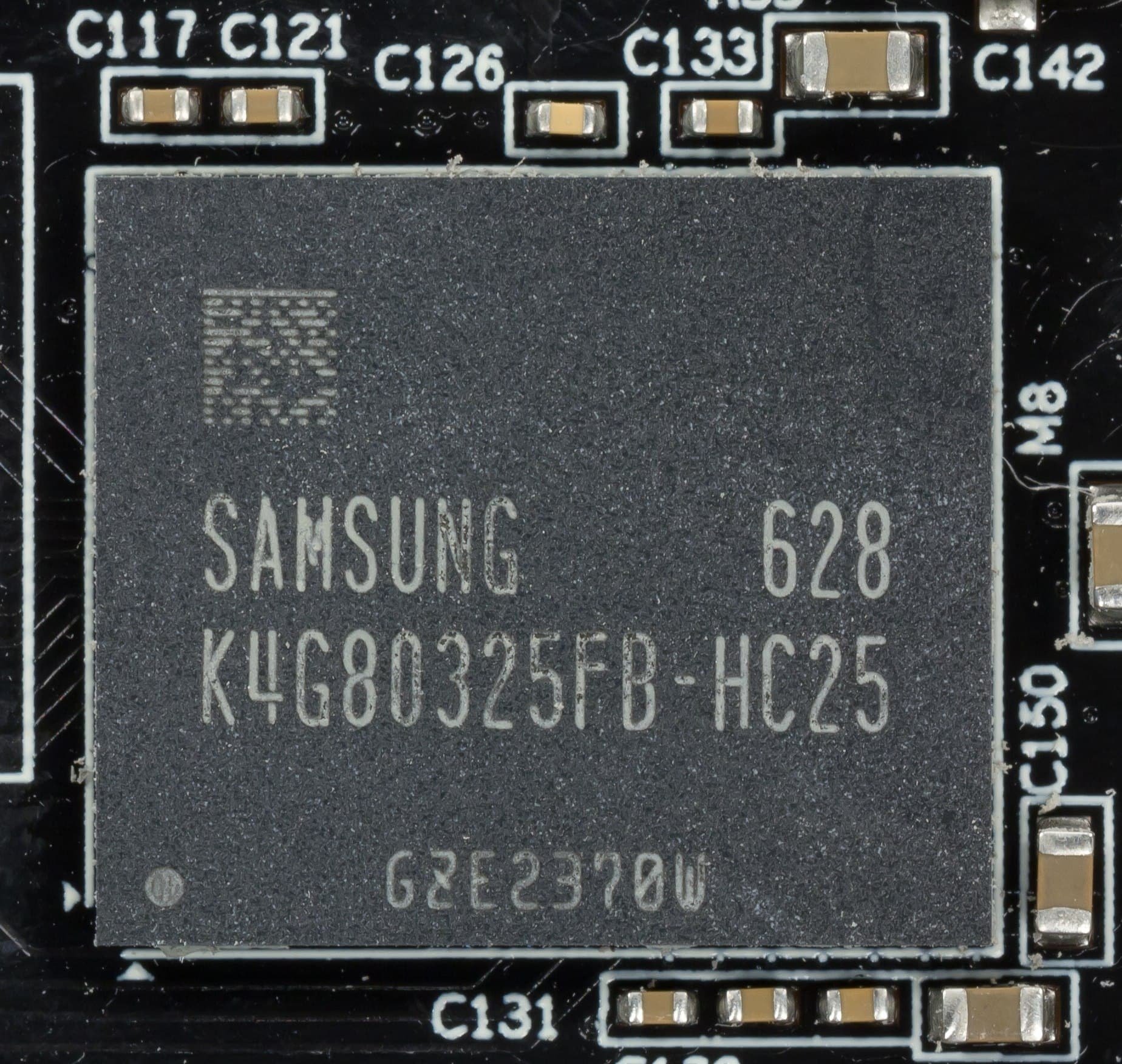 Карта имеет 6 ГБ памяти GDDR5 SDRAM, размещенной в 6 микросхемах по 8 Гбит на лицевой стороне PCB. Микросхемы памяти Samsung (GDDR5). Микросхемы рассчитаны на номинальную частоту работы в 2000 (8000) МГц. | ![]() |