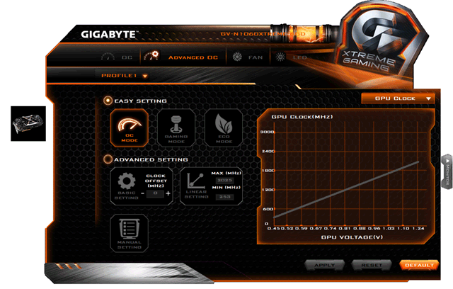 Gigabyte GeForce GTX 1060 Xtreme Gaming (6 ГБ) — один из лучших вариантов базового ускорителя, лидирующего по привлекательности в диапазоне цен 300—350 долларов. Данная карта предназначена для оверклокеров и имеет повышенный потенциал разгона, позволяя гибко и максимально эффективно регулировать частоты и напряжения, но при этом не слишком дорогая. Кроме того, она имеет фабричный разгон и демонстрирует производительность в среднем на 10,5% выше, чем референсная, обходя более дорогие решения предыдущего поколения. Ускоритель имеет очень тихую систему охлаждения и подсветку на кулере для любителей моддинга, он полностью готов для работы совместно с устройствами VR. По поводу дополнительного ручного разгона: память разгонялась неплохо, но уже выше 2250 (9000 МГц) начинались проблемы, а вот разгон ядра при сохранении стабильной работы видеокарты был возможен до 2165 МГц, при этом можно выжать дополнительно еще 4%-5% производительности (разумеется, успешность разгона зависят от конкретного экземпляра видеокарты). Еще раз повторим, что данный ускоритель бьет рекорды по соотношению цены и возможностей на момент написания материала (конец октября 2016).