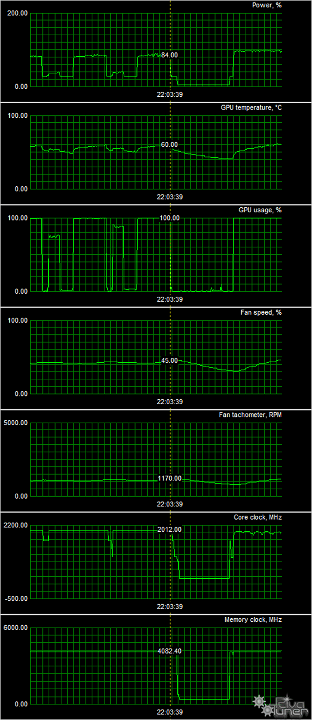 - Измерения проводились на расстоянии 50 см от видеокарты на уровне системы охлаждения.