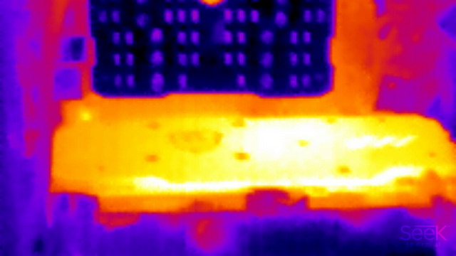 При просмотре фильма с аппаратным декодированием температура медленно поднималась до 39 °C, вентиляторы так и не включались. Уровень шума не изменялся (20,0 дБА).