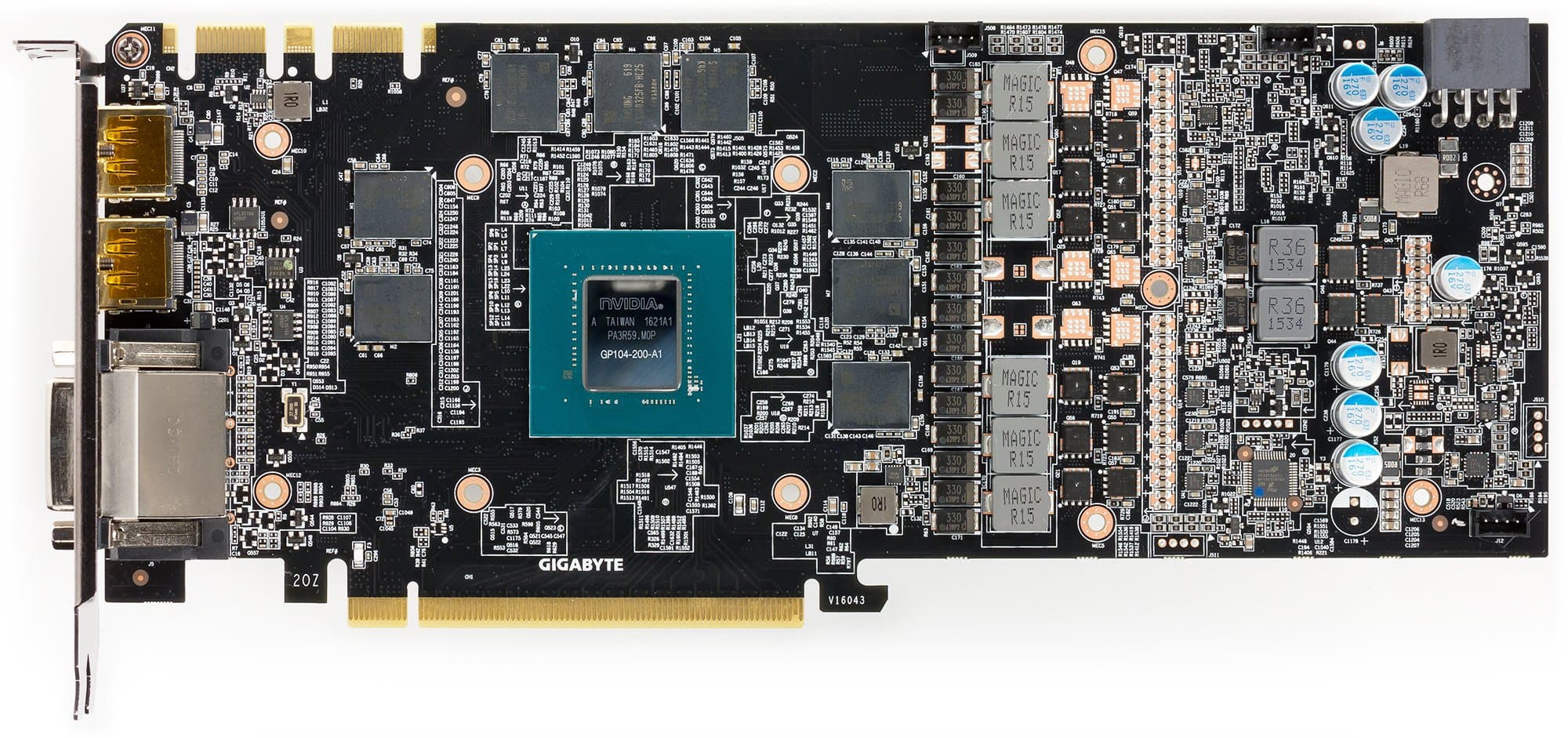 Мы знаем, что практически все ускорители компании Gigabyte полностью спроектированы собственными инженерами (а не являются копиями референс-карт). Это относится и к данному продукту. Сходство с референс-картой есть только в расположении микросхем памяти (это логично) и в наборе видеовыходов.