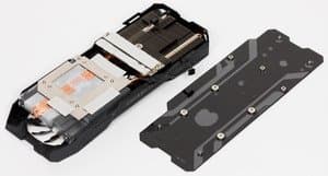 Блок питания переработан: схема имеет 6 фаз (плюс 2 фазы на питание микросхем памяти) и управляется цифровым контроллером uP9511P производства uPI Semiconductor. Однако это не все. Видеокарта поддерживает большой набор функций мониторинга, за которые отвечает контроллер Holtek HT32F52241 на базе микроконтроллера ARM Cortex -M0+. Он же регулирует мощность системы питания.