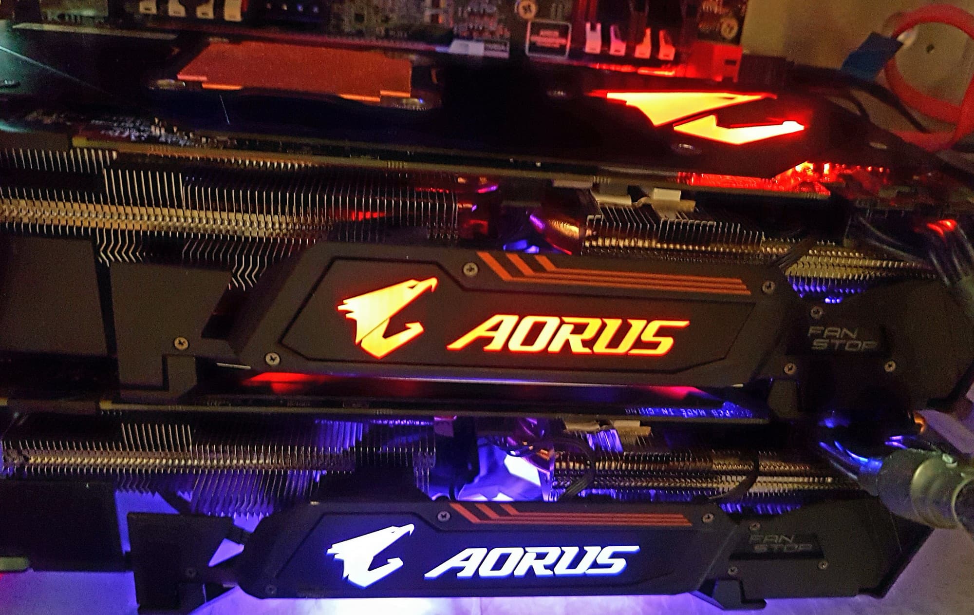 Объект исследования: Тандем из двух серийно выпускаемых ускорителей трехмерной графики, работающих по технологии SLI: 2 × Gigabyte Aorus GeForce GTX 1080 Xtreme Edition 8G 8 ГБ 256-битной GDDR5X