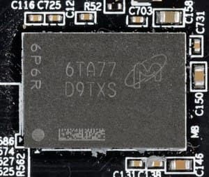Тандем имеет 2×8 ГБ памяти GDDR5X SDRAM, размещенной в 8 микросхемах по 8 Гбит на лицевой сторонe каждой карты. Микросхемы памяти Micron (GDDR5X) рассчитаны на номинальную частоту работы в 2500 (10000) МГц. | ![]() |