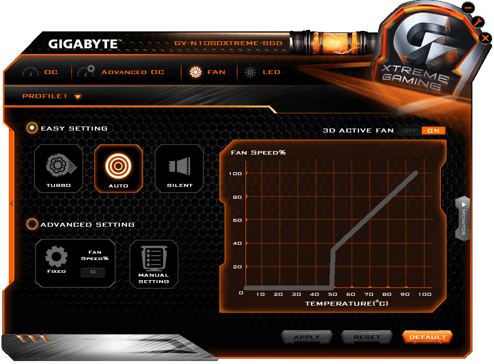 Gigabyte GeForce GTX 1080 G1 Gaming (8 ГБ) — очень неплохой вариант топового однопроцессорного ускорителя, демонстрирующий производительность в среднем на 3-4 процента выше, чем референс-карта. Ускоритель имеет очень тихую систему охлаждения, предлагает симпатичную и полезную подсветку на корпусе кулера, а также вполне может подойти любителям умеренного разгона, предоставляя возможность гибко регулировать как частоты, так и напряжения. Как и все продукты серии GTX 1080, данный акселератор полностью готов для работы совместно с устройствами VR.