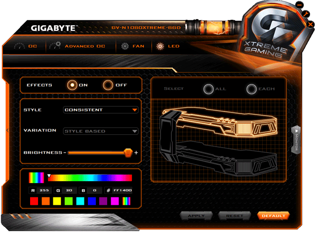 У ускорителя Gigabyte частоты работы прилично повышены (на 5%) относительно стандартных параметров референс-карты, что может обеспечить прирост производительности от 3% до 5% в зависимости от разрешения и режима работы.