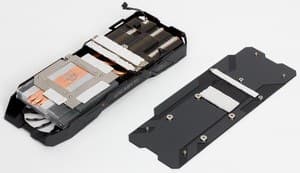 Система питания получила 8 фаз для GPU и 2 фазы для микросхем памяти, что дает возможность регулировать вольтажи с малым шагом для достижения максимального разгона с сохранением стабильной работоспособности и с защитой элементов от перегорания. Управляется эта схема цифровым контроллером uP9511P производства uPI Semiconductor. Ускоритель поддерживает функции мониторинга, за которые отвечает контроллер Holtek HT32F52241 на базе микроконтроллера ARM Cortex -M0+. Стоит упомянуть и технологию производства PCB — Ultra Durable, которая подразумевает двойные медные слои печатной платы и набор высококачественных дросселей и твердотельных конденсаторов. Карты, изготовленные по технологии Ultra Durable, должны меньше греться, а также не должны страдать свистом катушек при работе ускорителя (что за многие годы выпуска ускорителей стало привычным бедствием, о котором упорно умалчивают производители).