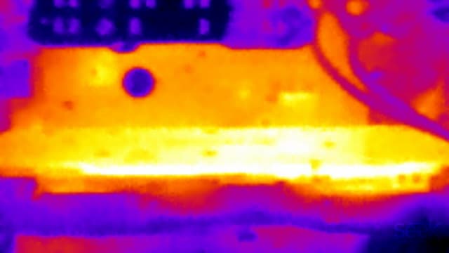 При просмотре фильма с аппаратным декодированием температура медленно поднималась до 50 °C, после чего вентиляторы включались и работали на частоте 910 оборотов в минуту. Уровень шума почти не изменялся и составлял 21,0 дБА.