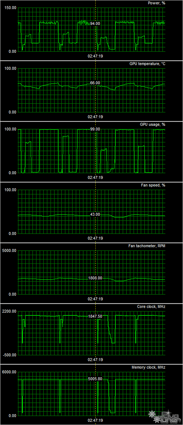 - Измерения проводились на расстоянии 50 см от видеокарты на уровне системы охлаждения.