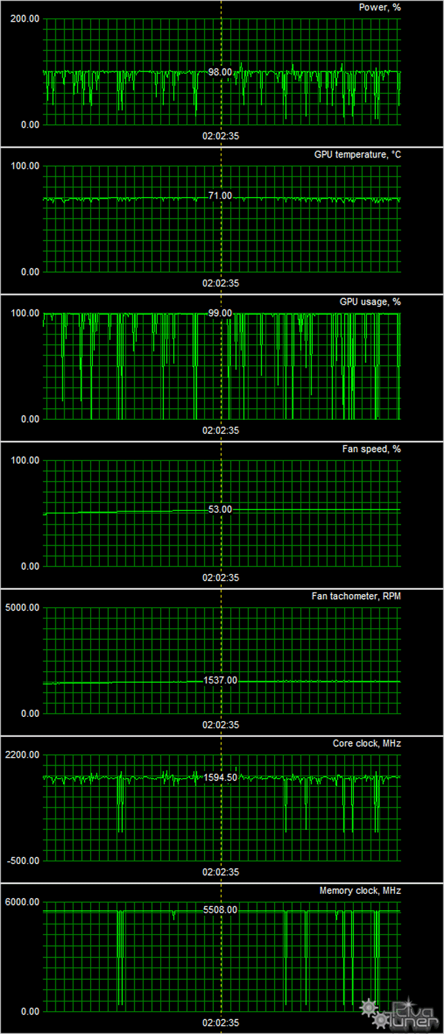 - Измерения проводились на расстоянии 50 см от видеокарты на уровне системы охлаждения.