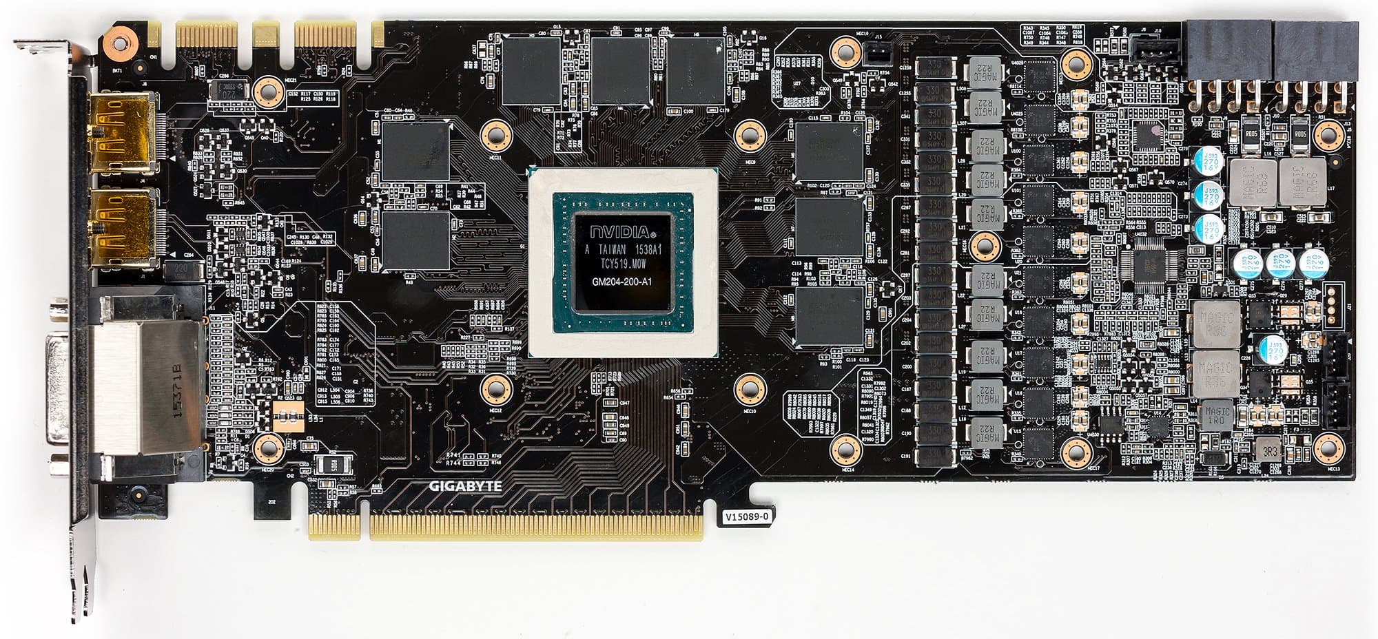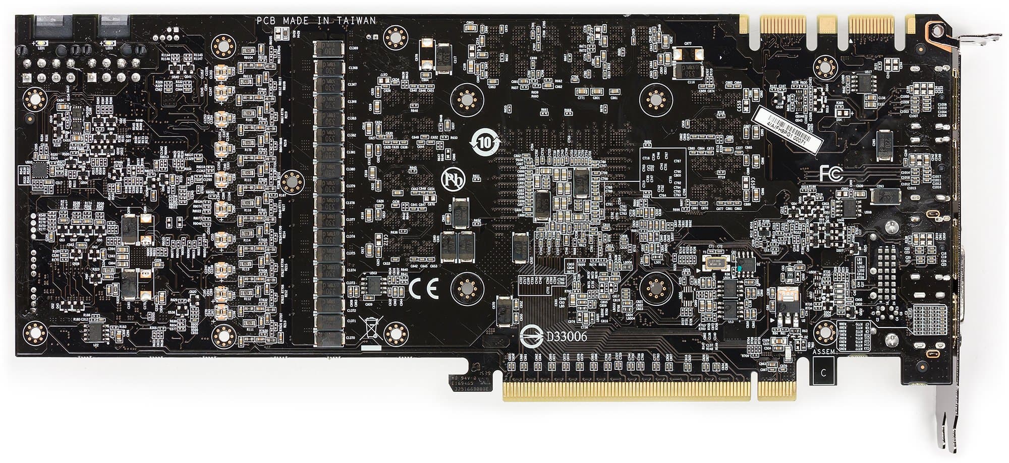 Печатная плата сформирована силами инженеров Gigabyte, она поддерживает технологию Ultra Durable VGA, что вкупе с использованием особых элементов силового блока уменьшает энергопотребление и нагрев PCB. Сильно изменена система питания, которая в данном случае работает по схеме 10+1 фаза и управляется цифровым контроллером.