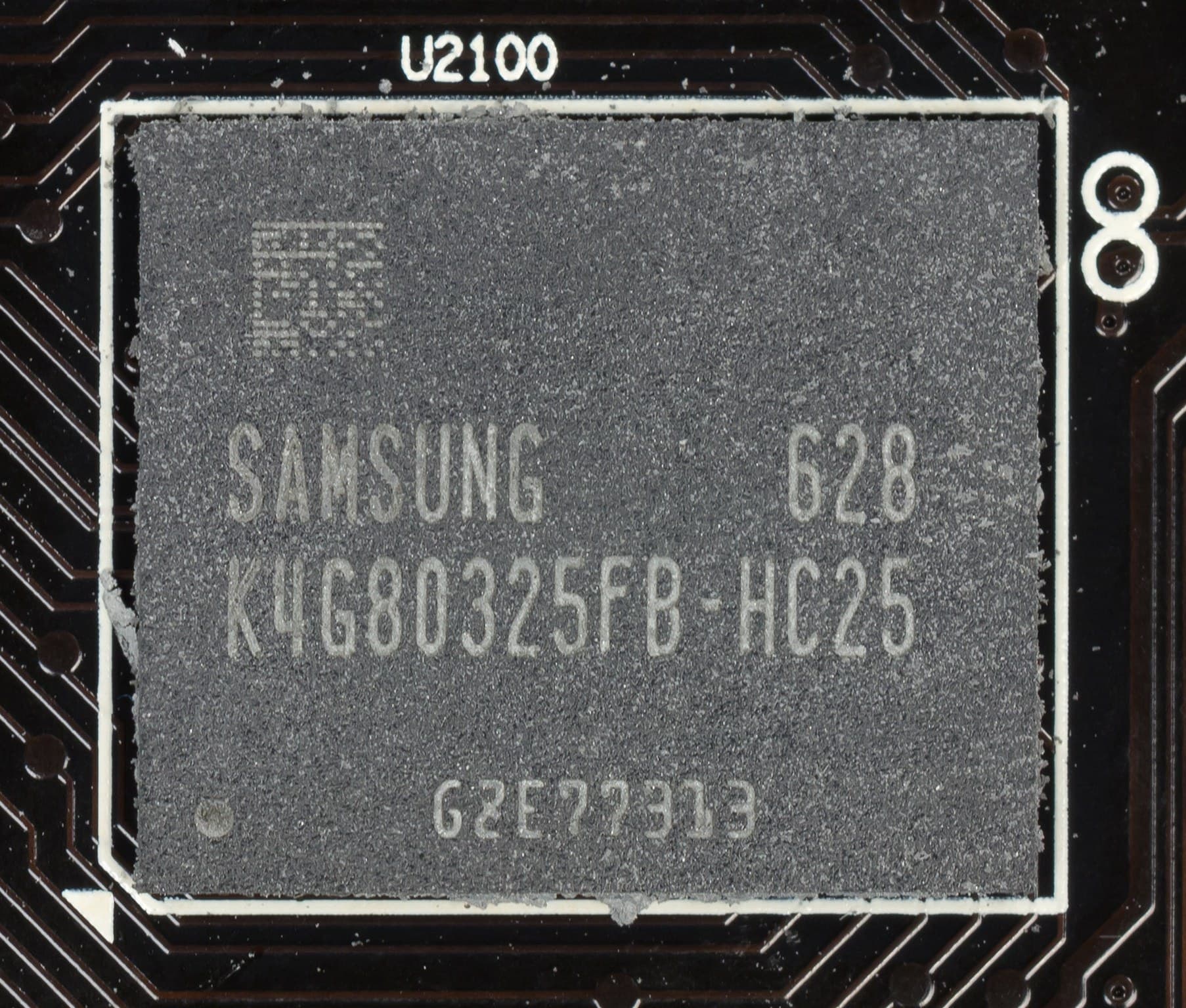 Карта имеет 8 ГБ памяти GDDR5 SDRAM, размещенной в 8 микросхемах по 8 Гбит на лицевой стороне PCB. Микросхемы памяти Samsung (GDDR5). Микросхемы рассчитаны на номинальную частоту работы в 2000 (8000) МГц. | ![]() |