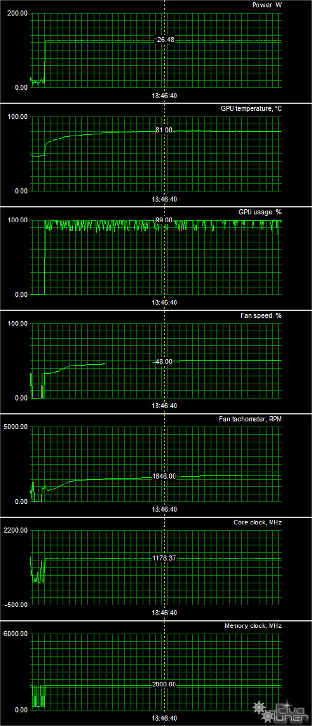- Измерения проводились на расстоянии 50 см от видеокарты на уровне системы охлаждения.