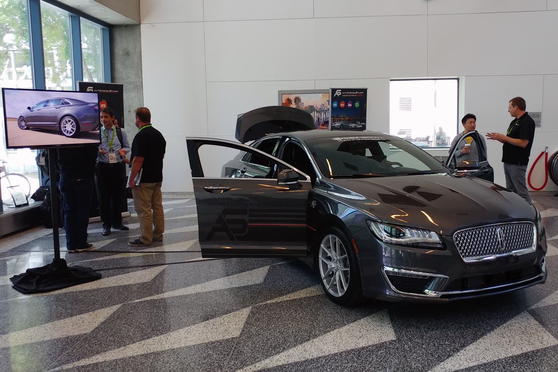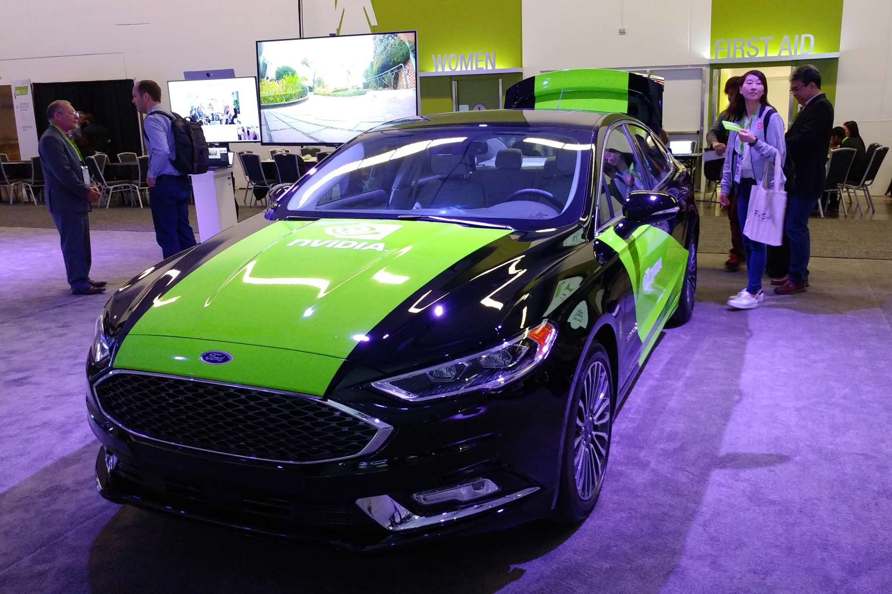 В холле и выставочном центре GTC вообще было представлено много различных автомобилей, так или иначе использующих решения компании. Выставка самой Nvidia включала уже известный нам проект BB8 — самопилотируемый автомобиль для тестирования различных технологий компании с использованием самообучаемых нейросетей.