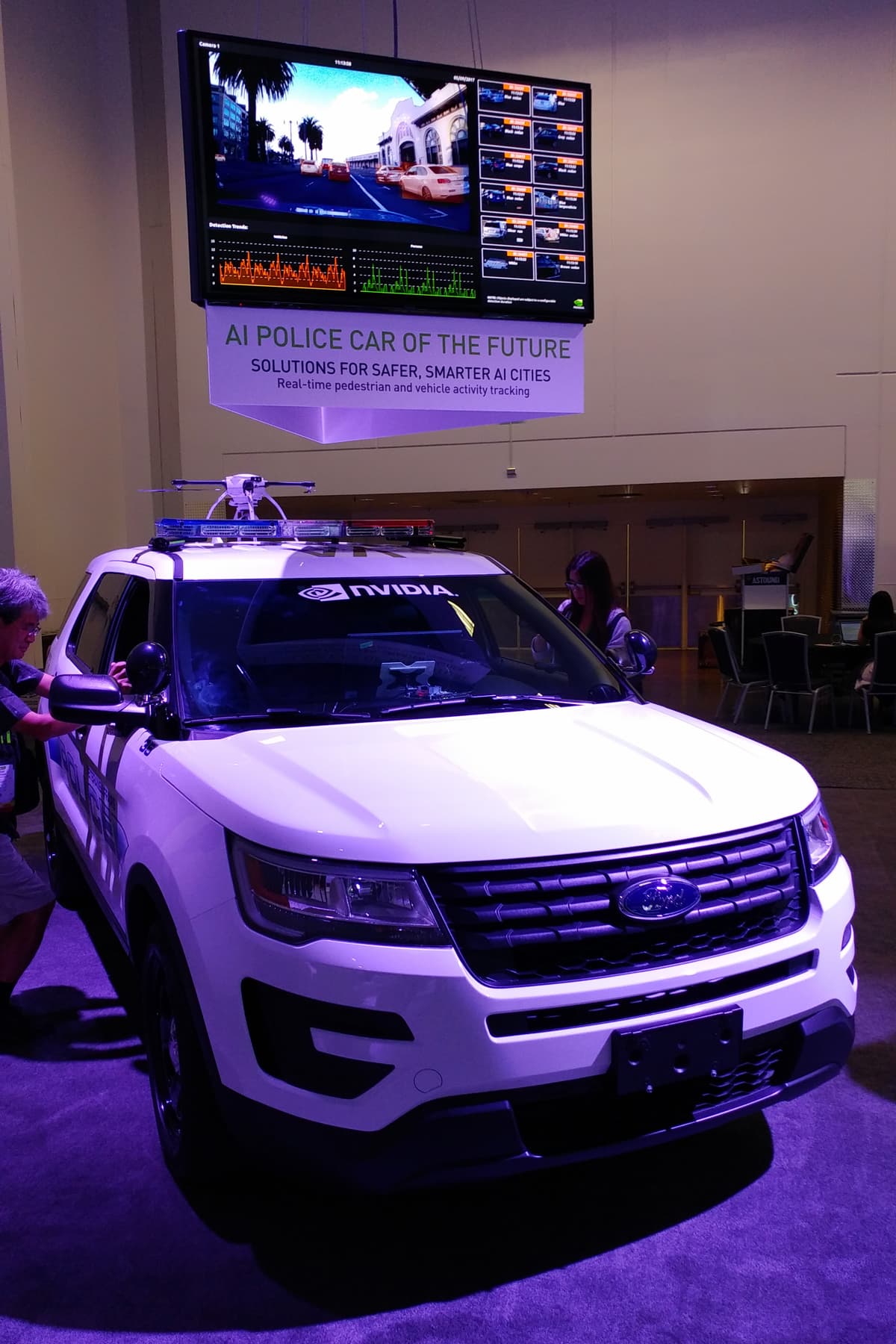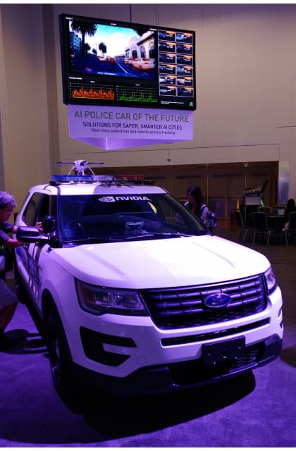 «Дубайский» робот не имеет отношения к Nvidia, он приведен просто в качестве примера. Но на выставке GTC было показано несколько других роботов с аналогичными задачами. Таких, как полицейский автомобиль будущего, который обеспечивает отслеживание активности автомобилей и пешеходов в реальном времени в качестве решения для будущих «умных городов».