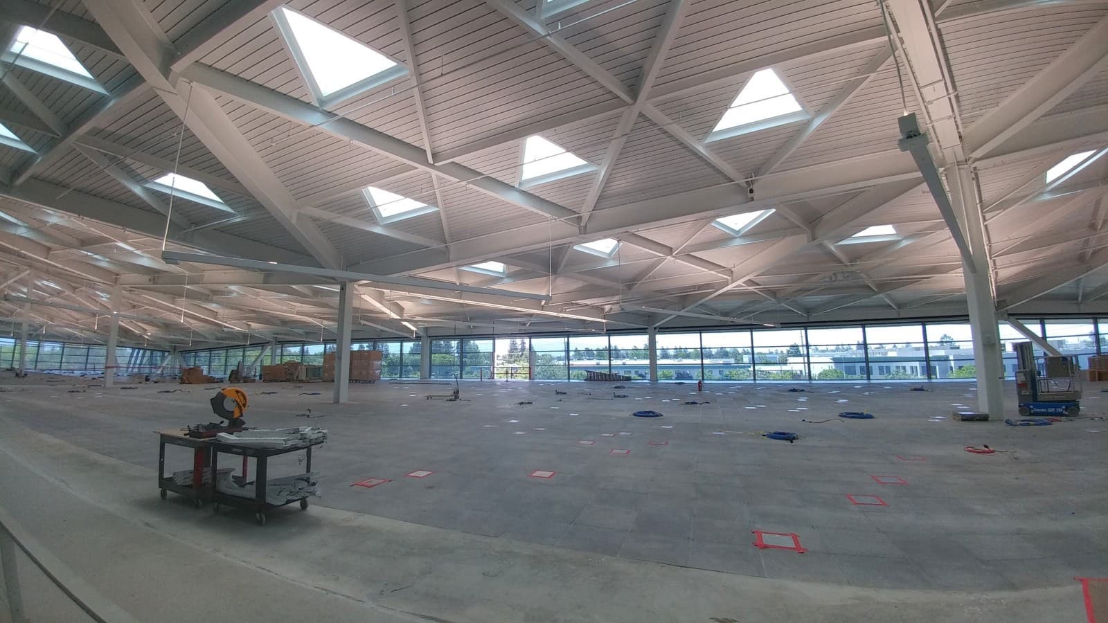 Стеклянная крыша сделана из специальных видов стекла — в строительстве использованы четыре разных типа этого материала для того, чтобы поддерживать комфортную температуру внутри и максимально использовать возможности естественного освещения, что весьма актуально для солнечной Калифорнии.