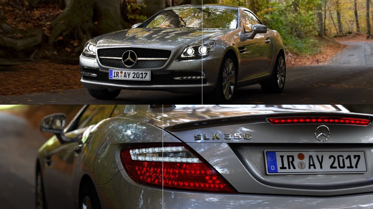 Для частичного решения этой проблемы можно применить методы удаления этого «шума» с картинки при сохранении всех деталей на гранях и поверхностях, что называется шумоподавлением. Но существующие алгоритмы требуют длительной обработки, что делает их непрактичными, а на GPU можно их серьезно ускорить. Именно для быстрого получения высокодетализированных изображений в Nvidia решили применить искусственный интеллект. Специалисты компании добавили в свой рендерер Nvidia Iray специальное шумоподавление — «дорисовку» еще не до конца рассчитанной информации (тех самых «шумных» пикселей), которая осуществляется при помощи алгоритмов глубокого обучения.