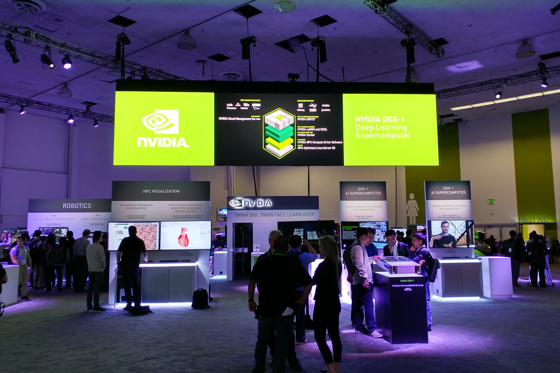 И даже больше того — технологическая конференция GTC сейчас проходит несколько раз в год в разных городах мира, в том числе в Китае, Европе, Израиле, Японии и паре городов США (Сан-Хосе и Вашингтон). В калифорнийской части GTC этого года участвовало 7000 человек (крупнейшие компании из разных сфер деятельности, AI-стартапы, разработчики программного обеспечения, инвесторы, пресса, аналитики и многие другие), было проведено 600 технических сессий и 310 сессий, посвященных именно искусственному интеллекту, расположено 150 стендов, 178 постеров и 67 лабораторий по технологиям глубокого обучения. GTC давно стала главным мероприятием для компании, и именно тут делаются главные анонсы Nvidia, а также становится понятно, к чему это все приведет через несколько лет. Вот об этом мы сегодня и поговорим.