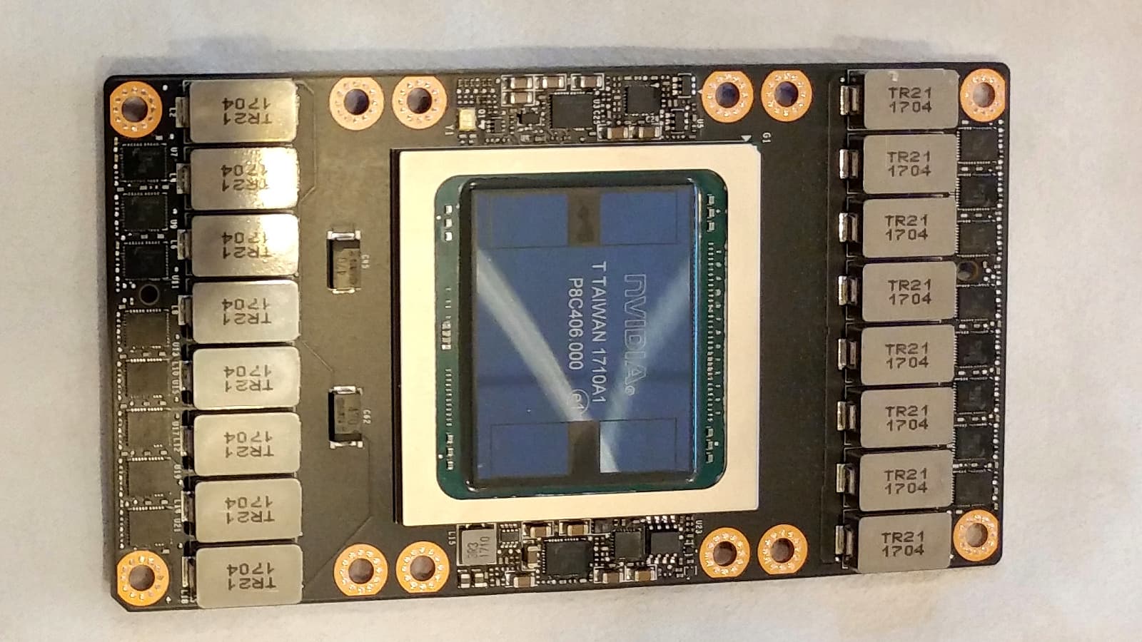 При огромной площади кристалла в 815 мм² неудивительно, что даже использование самого передового 12-нанометрового FFN-техпроцесса компании TSMC позволило сделать его лишь на самой грани нынешних возможностей фотолитографии. Чип получился очень большой и дорогой во всем, и инженерная команда Nvidia в лице Джона Албена (Jonah Alben), старшего вице-президента по проектированию GPU, благодарна Дженсену за то, что он дал им возможность поработать над столь сложным и многообещающим проектом.