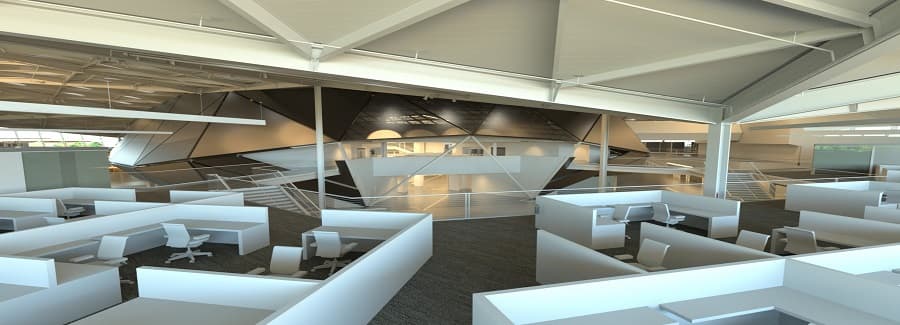 Решение open space для рабочих мест может показаться кому-то спорным и подходящим не для всех видов работы, но возможно это лишь дело привычки. А для задач, требующих конфиденциальности, всегда есть закрытые комнаты и залы. Выглядеть рабочие места будут примерно так: