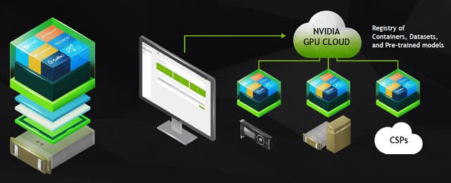 Кроме этих готовых аппаратных решений, Дженсен анонсировал облачную платформу Nvidia GPU Cloud (NGC). Эта облачная платформа предоставляет разработчикам удобный доступ к полноценному программному набору инструментов для внедрения систем искусственного интеллекта при помощи ПК, систем DGX или облака. Благодаря NGC, разработчики смогут легко и просто получить доступ к новейшим версиям оптимизированных фреймворков и самым современным ускорителям вычислений.