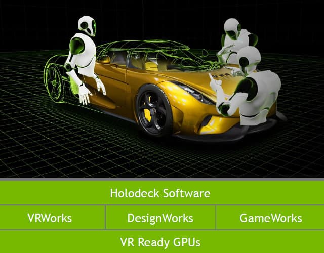 Для демонстрации работы технологии Nvidia воспользовалась помощью со стороны Christian von Koenigsegg, основателя известной компании Koenigsegg Automotive AB из Швеции, производящей суперкары. Он присоединился к выступлению Дженсена при помощи VR-среды Holodeck и показал, как можно было бы использовать ее в разработке полностью карбонового кузова суперкара Koenigsegg Regera.