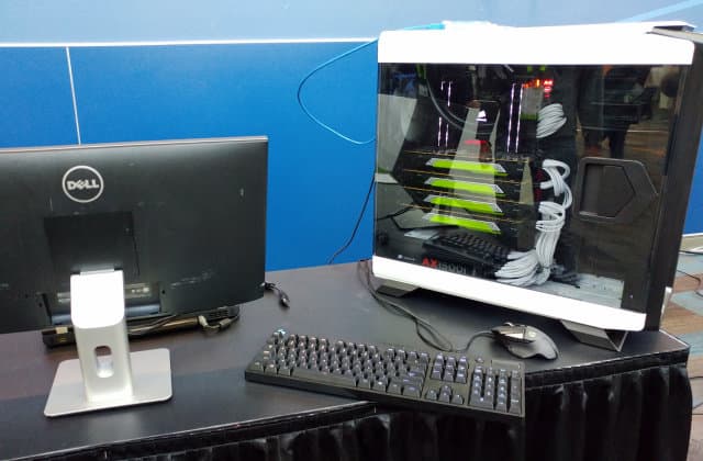 Также Дженсен сразу же представил и DGX Station — персональное решение с четырьмя ускорителями Tesla V100, соединенными по NVLink, обеспечивающими 480 тензор TFLOPS. Это решение имеет три видеовыхода DisplayPort, блок питания мощностью 1500 Вт и водяное охлаждение. Оно, в свою очередь, будет предлагаться на рынке за $69000.