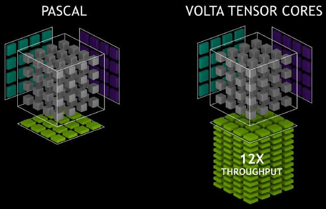 Именно поэтому индустрии высокопроизводительных вычислений потребовался даже еще больший скачок, чем привычные 1,5 раза ускорения в год. Также на всю индустрию повлияли и анонсы специализированных решений для машинного обучения, вроде Tensor Processing Unit (TPU) от Google, вторая версия которого была объявлена чуть позднее. Вот и Nvidia решила не отставать, представив новое поколение вычислительной архитектуры Volta, в который вошли специализированные блоки, которые и обеспечили пятикратное преимущество по скорости по сравнению с Pascal в задачах глубокого обучения.