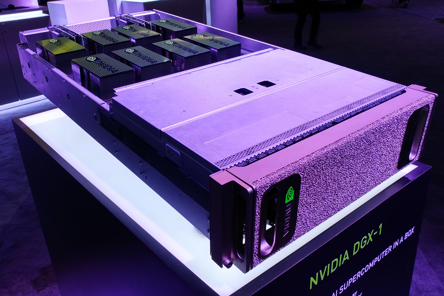 Кроме новой вычислительной архитектуры Volta и ускорителя Tesla V100 на его основе, Дженсеном также была анонсирована и новая линейка суперкомпьютерных систем с искусственным интеллектом — Nvidia DGX, базирующаяся на этом же процессоре.
