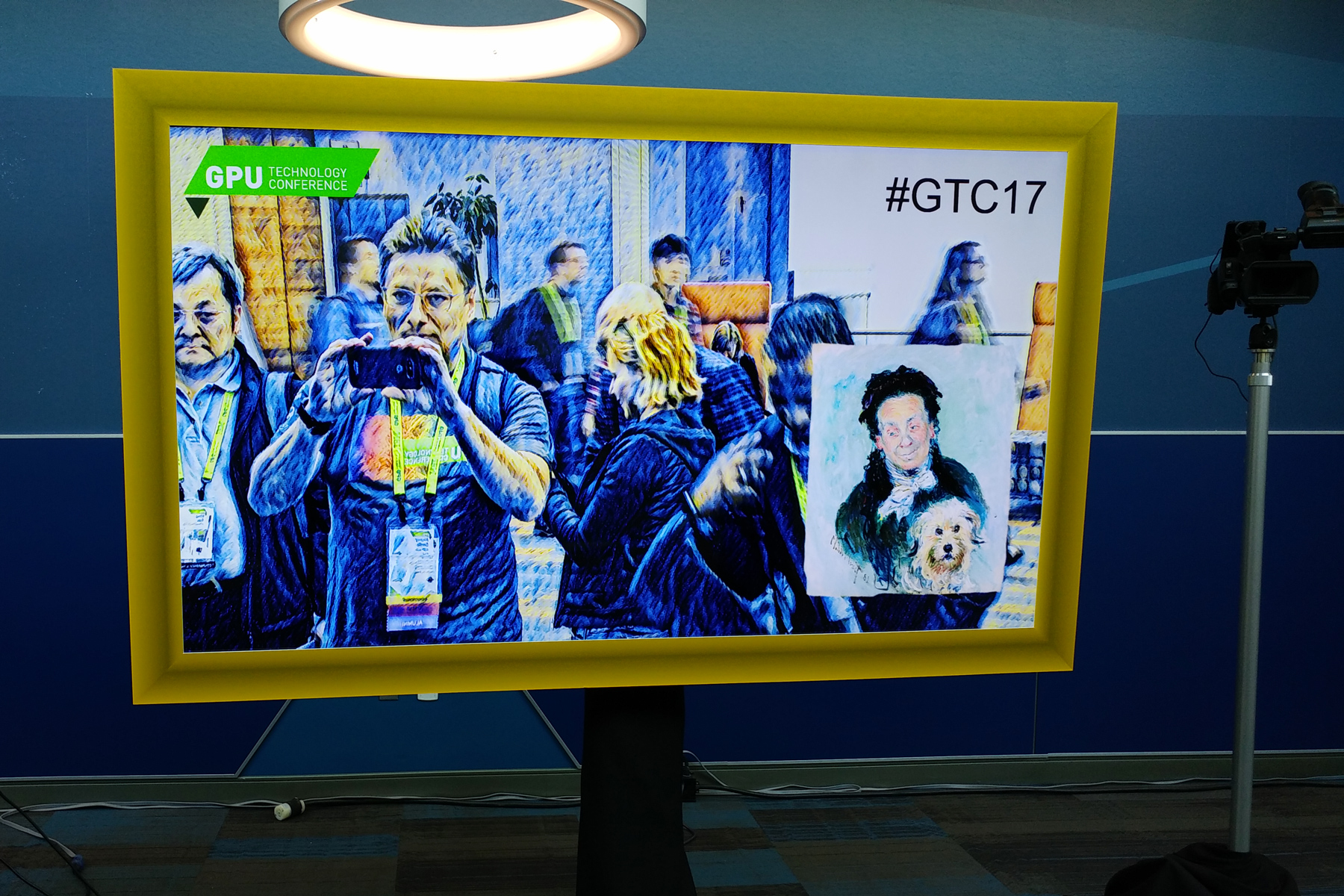 Во время своего ключевого выступления на GTC, президент Nvidia Дженсен Хуанг впервые публично продемонстрировал работу алгоритма глубокого обучения в комбинированном режиме рендерера Nvidia Iray, когда GPU сначала лишь частично отрисовывает картинку, затем работает ИИ, удаляя шум с картинки, и картинка сразу же становится гораздо качественней, хотя трассировка лучей еще не закончила свою работу над всеми пикселями.