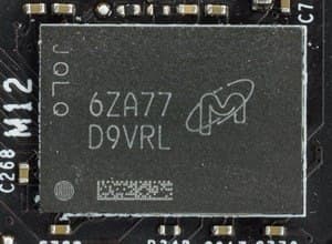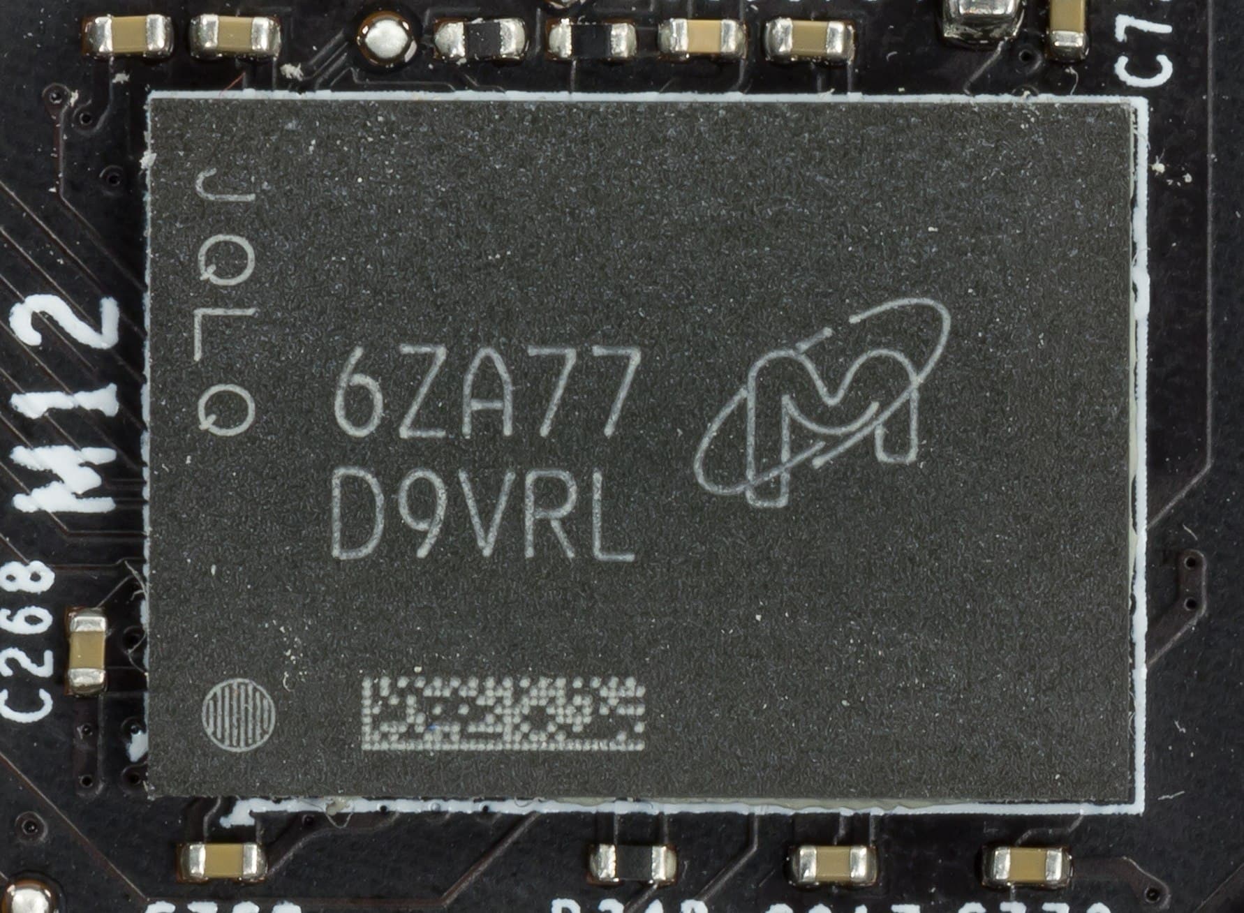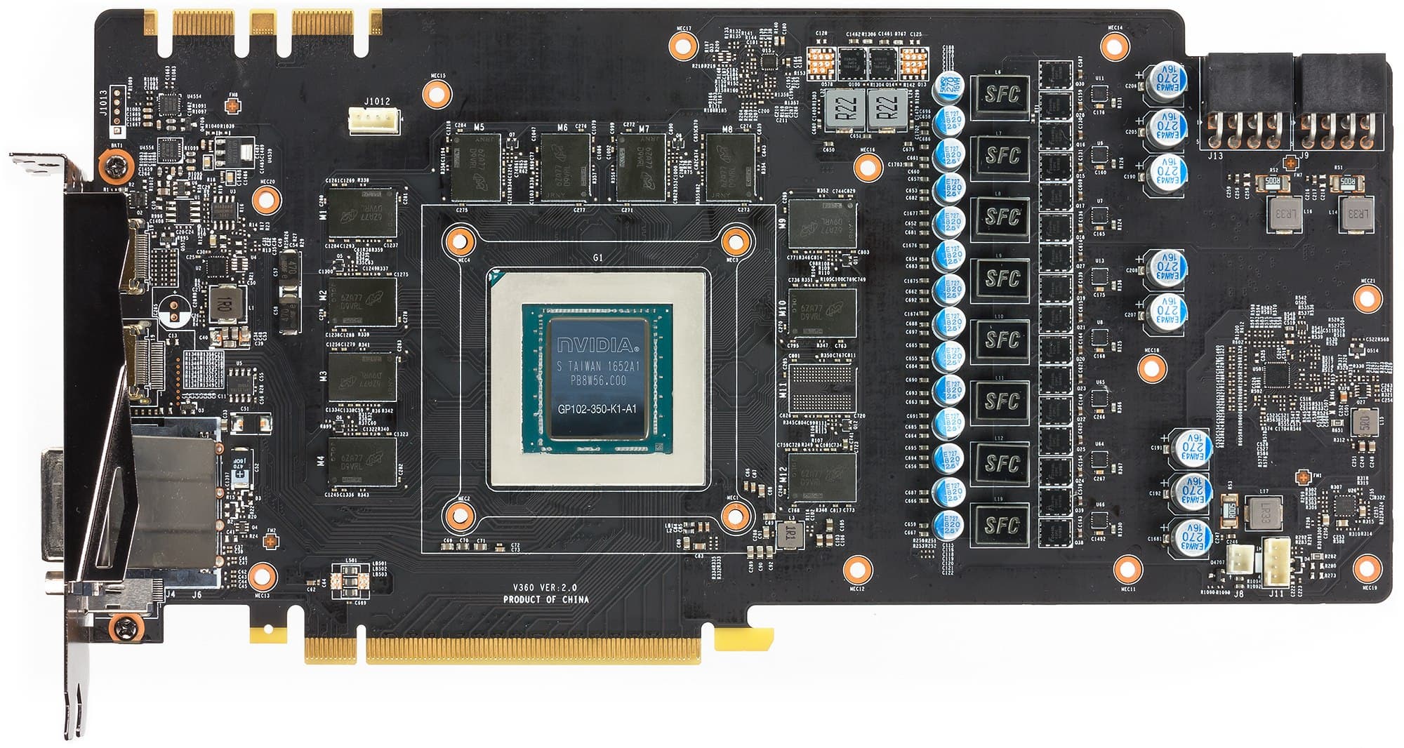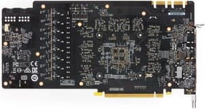| Карта имеет 11 ГБ памяти GDDR5X SDRAM, размещенной в 11 микросхемах по 8 Гбит на лицевой стороне PCB. Микросхемы памяти Micron (GDDR5X) рассчитаны на номинальную частоту работы в 2800 (11200) МГц. | ![]() |