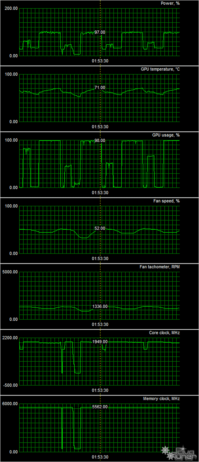 Также стоит обратить внимание на немного повышенные (на 5,5% по ядру) частоты работы ускорителя относительно стандартных параметров референс-карты, что может обеспечить прирост производительности примерно в 4%-5% в зависимости от разрешения и режима работы.