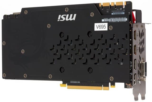 Традиционно продукты компании MSI полностью спроектированы своими инженерами. Это относится и к данному ускорителю. Сходство с референс-картой есть только в расположении микросхем памяти (что логично) и в наборе видеовыходов.