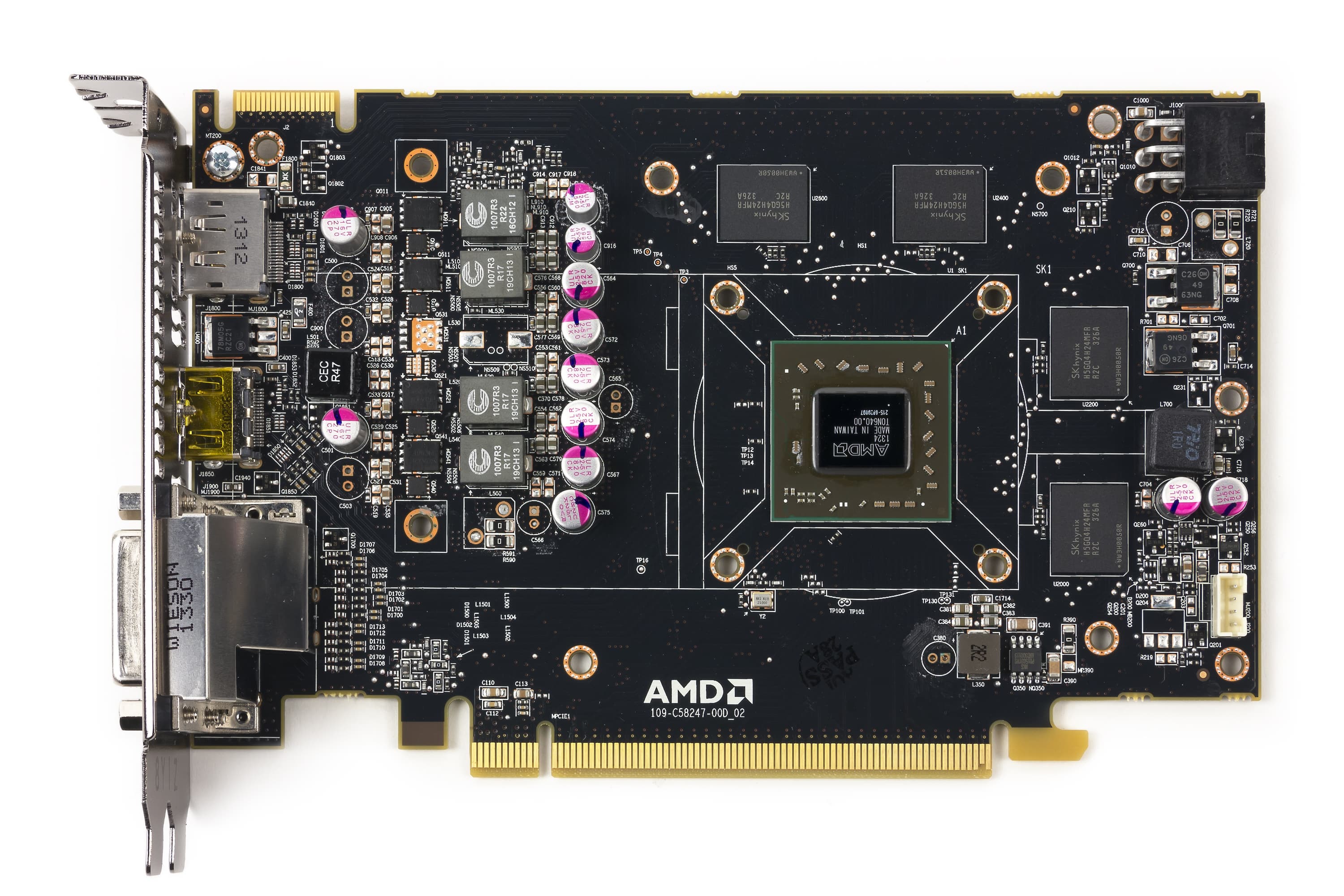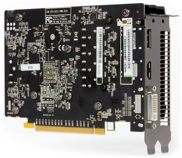 Карта имеет 2048 МБ памяти GDDR5 SDRAM, размещенной в 4 микросхемах по 4 Гбит на лицевой сторонe PCB. Микросхемы памяти SK Hynix (GDDR5). Микросхемы рассчитаны на максимальную частоту работы в 1500 (6000) МГц. | ![]() |