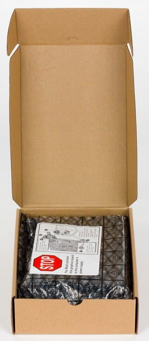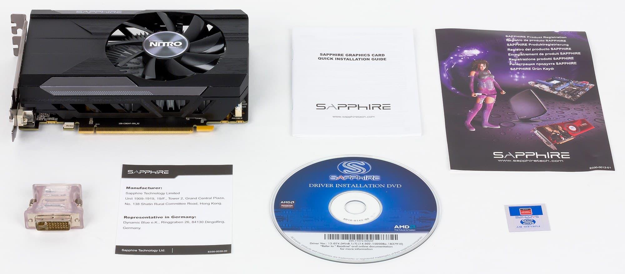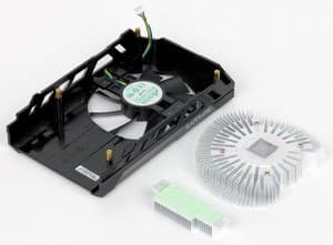 Базовый комплект поставки должен включать в себя руководство пользователя, диск с драйверами и утилитами. Мы видим базовый комплект плюс адаптер DVI-to-VGA и фирменную наклейку. | ![]() |