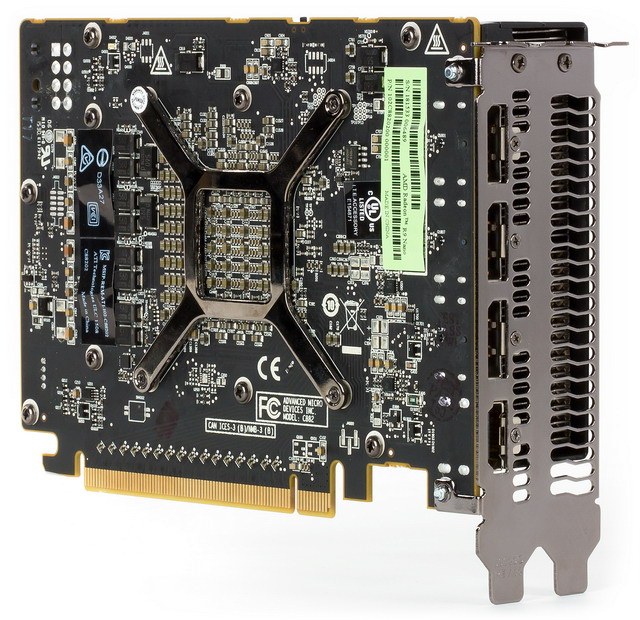 Новая сверхкомпактная плата компании AMD в этот раз оказалась медленнее всех, в том числе одночиповой топовой платы из предыдущего поколения в виде Radeon R9 290X, а также современной топовой платы на базе чипа Fiji, уступив последней снова примерно четверть, что объяснимо теорией. Зато непонятно, почему новинка уступила плате на Hawaii, так как она по всем параметрам сильнее предшествующей модели.
