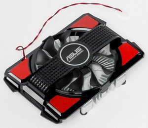 Схема питания имеет 5 фаз (4+1) и управляется цифровым контроллером Digi+ ASP1211. Следует также заметить, что традиционно для Asus система питания исполнена по технологии Super Alloy Power II, с использованием современных твердотельных конденсаторов. Видеокарта не имеет дополнительного питания, поскольку ее максимальное энергопотребление укладывается в стандарт PCI-E даже самой первой версии (75 Вт).