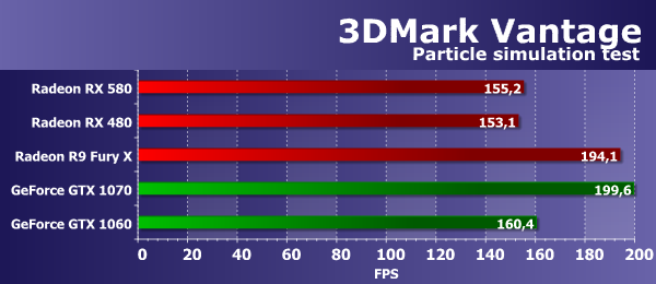 Несмотря на теоретически меньшее количество геометрических исполнительных блоков и отставание по геометрической производительности у чипов AMD, по сравнению с конкурирующими решениями, платы Radeon в этом тесте работают очень быстро, обгоняя все видеокарты GeForce, представленные в сравнении, даже значительно более дорогие. Так, анонсированная сегодня плата Radeon RX 580 обогнала в этом тесте конкурента GeForce GTX 1060 почти на 50%, а GTX 1070 уступила им обеим. Feature Test 5: GPU Particles