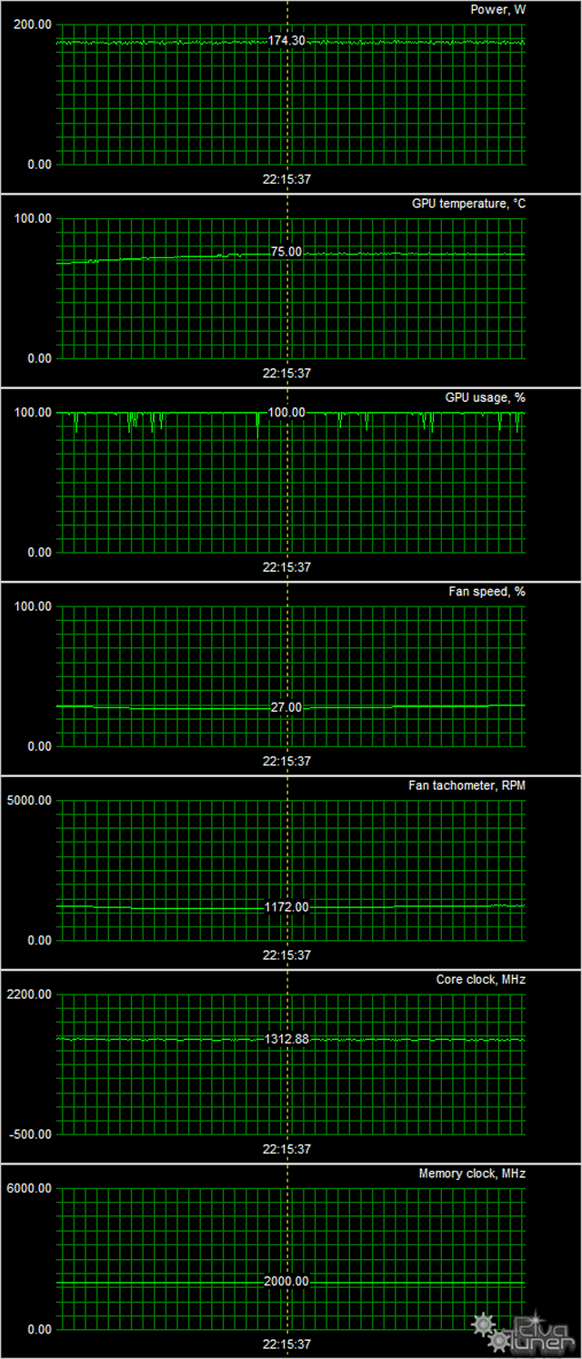 - Измерения проводились на расстоянии 50 см от видеокарты на уровне системы охлаждения.