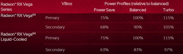 Технология Radeon WattMan уже известна нам по предыдущим решениям, она позволяет простым способом настроить оптимизированные по энергопотреблению и производительности режимы работы. Вместе с Vega 10 в драйверах появились предустановленные профили производительности/потребления: power save, balance, turbo и пользовательский custom, отличающиеся различными пределами потребления энергии: