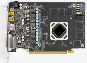 Карта имеет 2048 МБ памяти GDDR5 SDRAM, размещенной в 8 микросхемах по 2 Гбит (на лицевой стороне PCB). Микросхемы памяти Samsung (GDDR5). Микросхемы рассчитаны на максимальную частоту работы в 1500 (6000) МГц. | ![]() |
