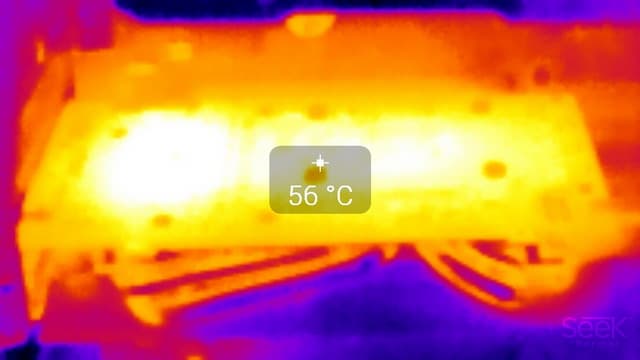 Наиболее нагретая часть — в районе преобразователей напряжения.