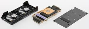 Видеокарта имеет систему Dual BIOS, когда переключателем на верхнем торце можно задавать запуск карты со старым, обычным BIOS или с новым UEFI BIOS, который обеспечивает более быструю загрузку на современных материнских платах. Заодно это определенная защита на случай неудачной прошивки BIOS (карта все равно запустится, используя другой BIOS).