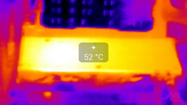 При просмотре фильма с аппаратным декодированием температура медленно поднималась до 55 °C, вентиляторы включались и работали на частоте вращения около 400 оборотов в минуту, уровень шума почти не изменялся и составлял 21 дБА.
