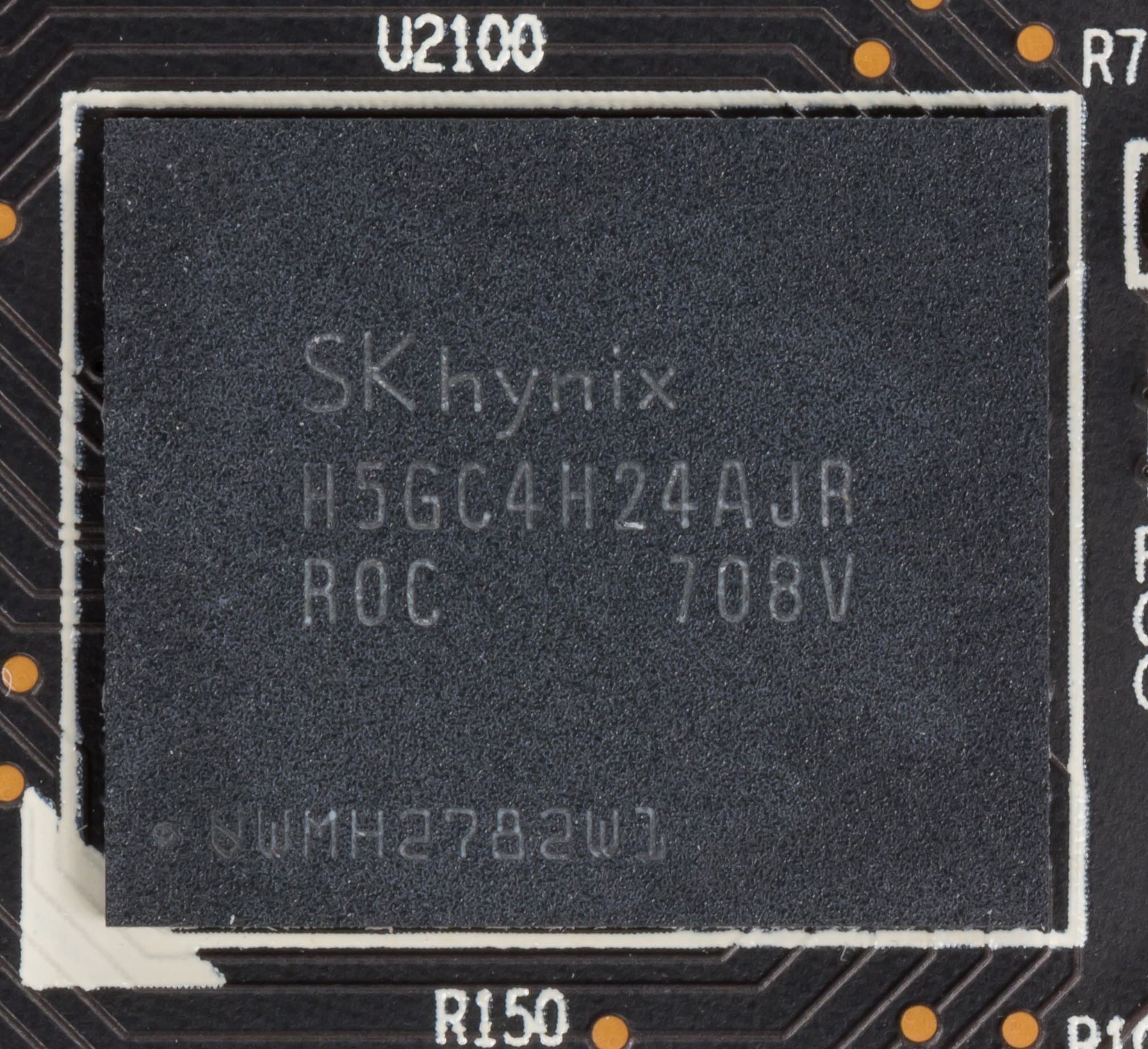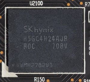 | Карта имеет 4 ГБ памяти GDDR5 SDRAM, размещенной в 8 микросхемах по 4 Гбит на лицевой стороне PCB. Микросхемы памяти SK Hynix (GDDR5) рассчитаны на номинальную частоту работы в 1750 (7000) МГц. | ![]() |